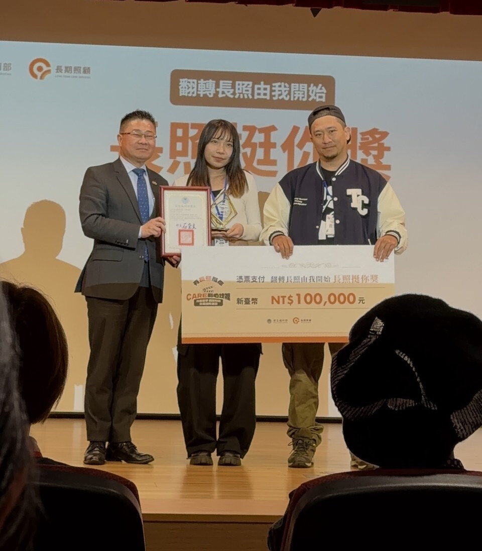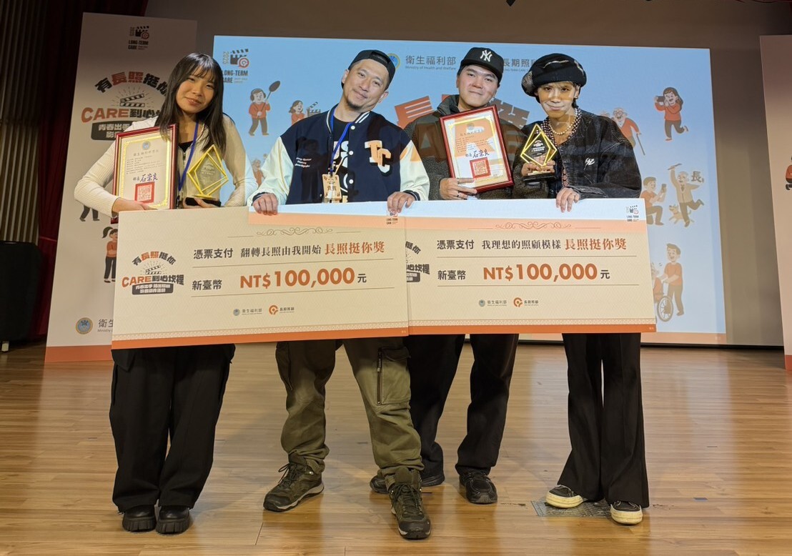 此次競賽吸引全國 136 隊、229 位大專學子參賽,兩位同學以深刻且具感染力的作品脫穎而出,不僅展現了對長期照護議題的敏銳觀察,更充分展現了創意與社會關懷的實踐精神。