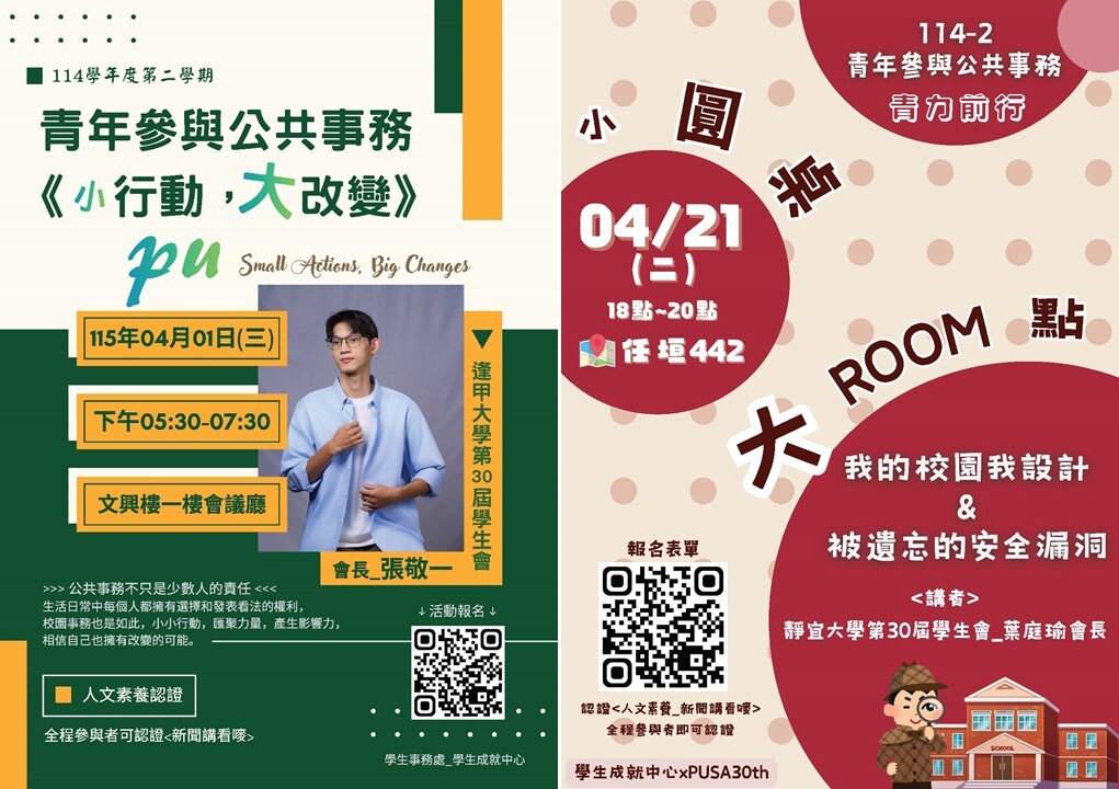 兩場活動,邀請參與學生自治組織的青年...分享校內外公共事務的經驗,以及個人的改變與學習成長。