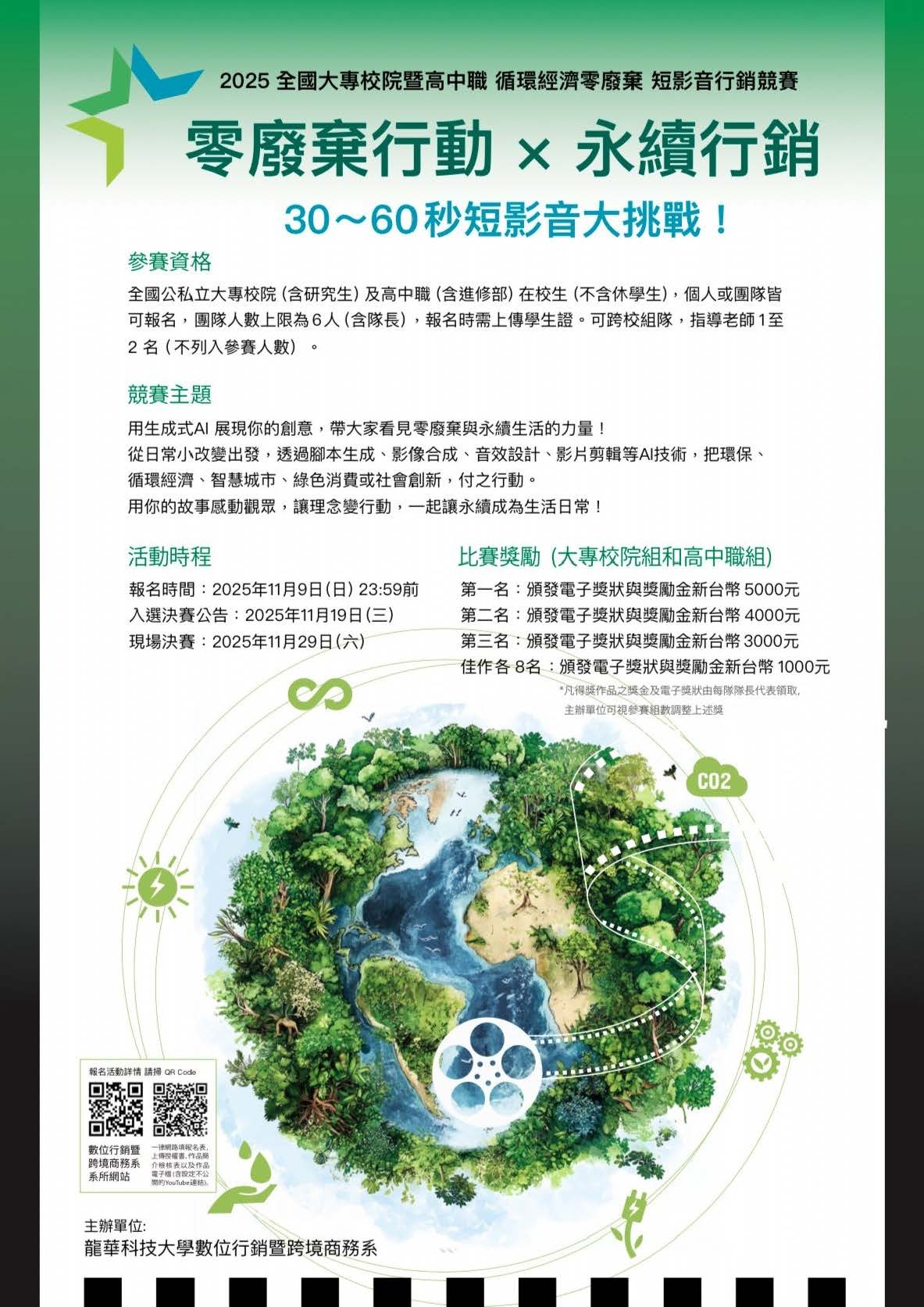 【學生成就中心轉知】2025全國大專校院暨高中職循環經濟零廢棄短影音行銷競賽