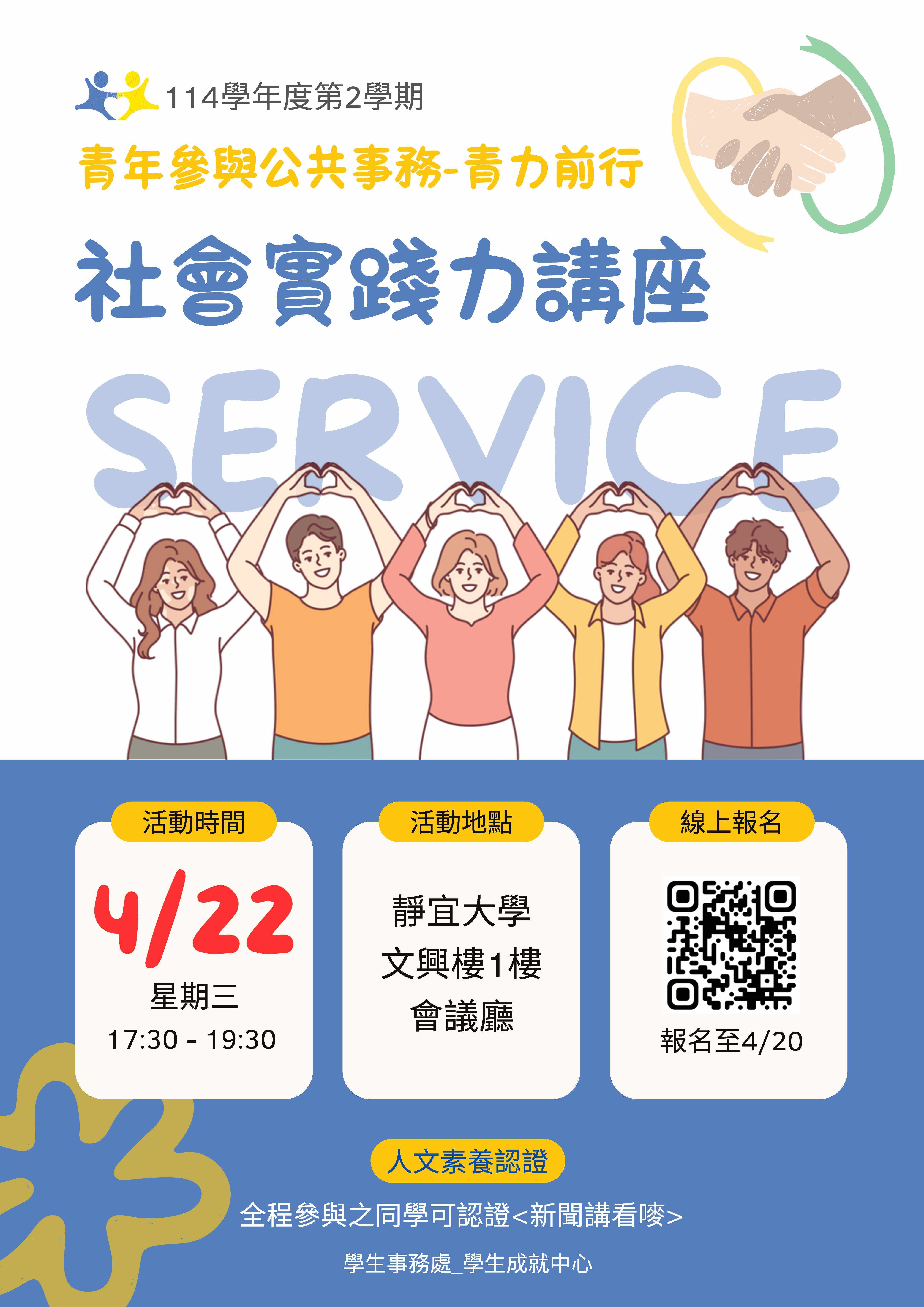 邀請本校投入社會服務之社團,分享理念與行動力,