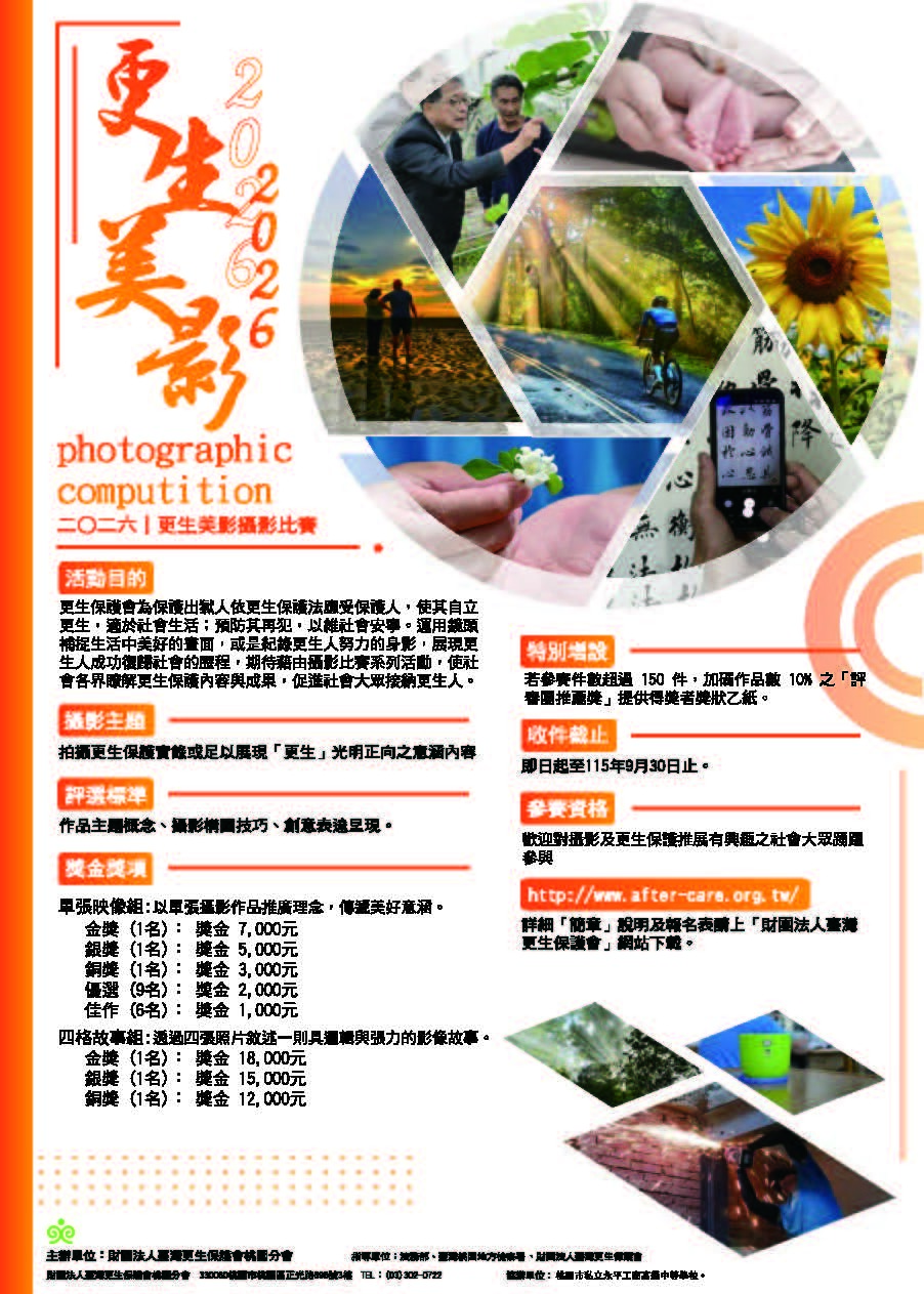 【學生成就中心轉知】115年更生美影-攝影比賽活動